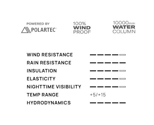 Polartec® Power Shield™ RPM(10,000mm 수주/30,000g/m²/24시간)은