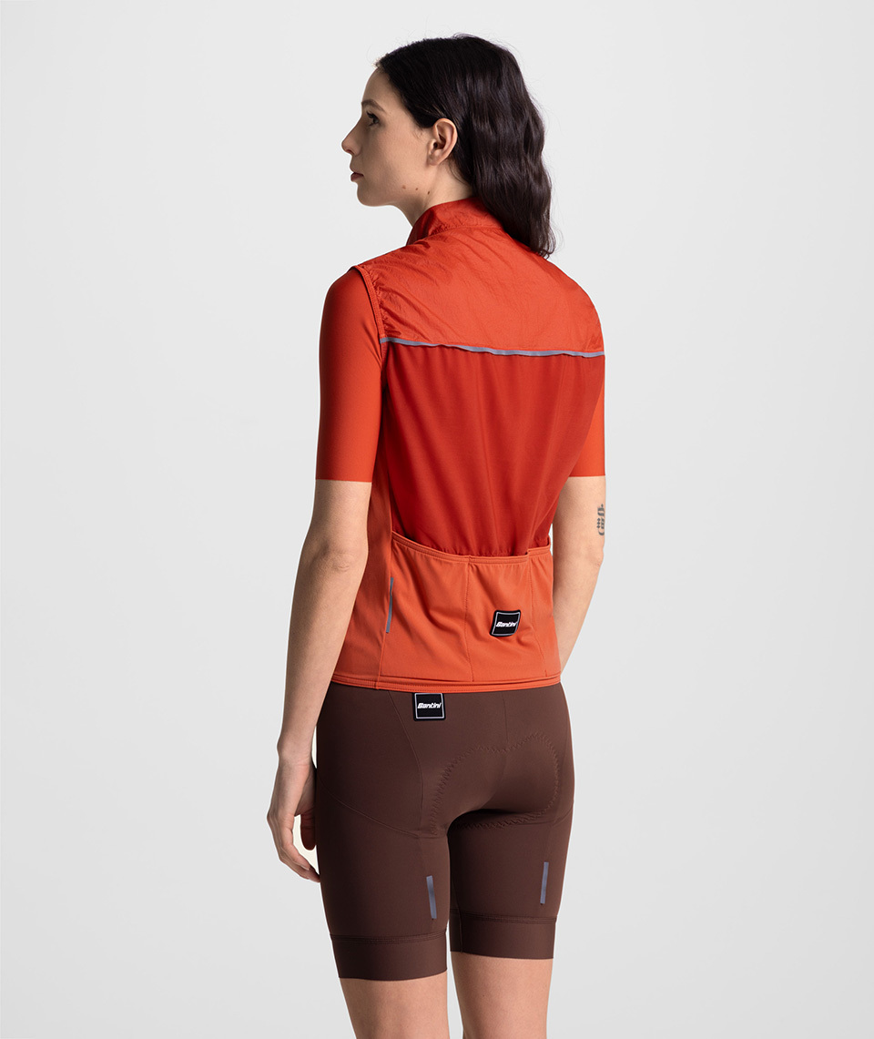 Practical and functional, it includes three rear pockets to keep your essentials within easy reach. For added safety on the road, the vest is finished with reflective details: subtle accents on the front and a reflective strip on the back improve visibility in low-light conditions or evening rides.