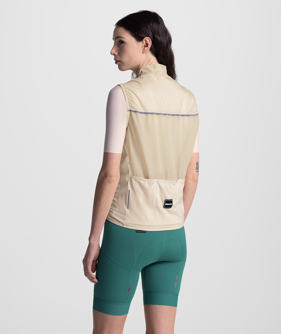 Practical and functional, it includes three rear pockets to keep your essentials within easy reach. For added safety on the road, the vest is finished with reflective details: subtle accents on the front and a reflective strip on the back improve visibility in low-light conditions or evening rides.